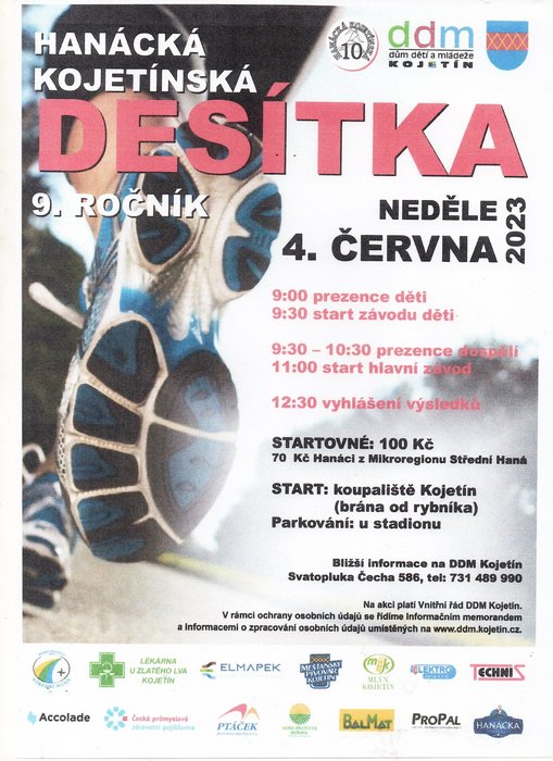 Střední Haná > Aktuality > Hanácká kojetínská desítka -běh 9.ročník - neděle 4.června 2023- koupaliště Kojetín